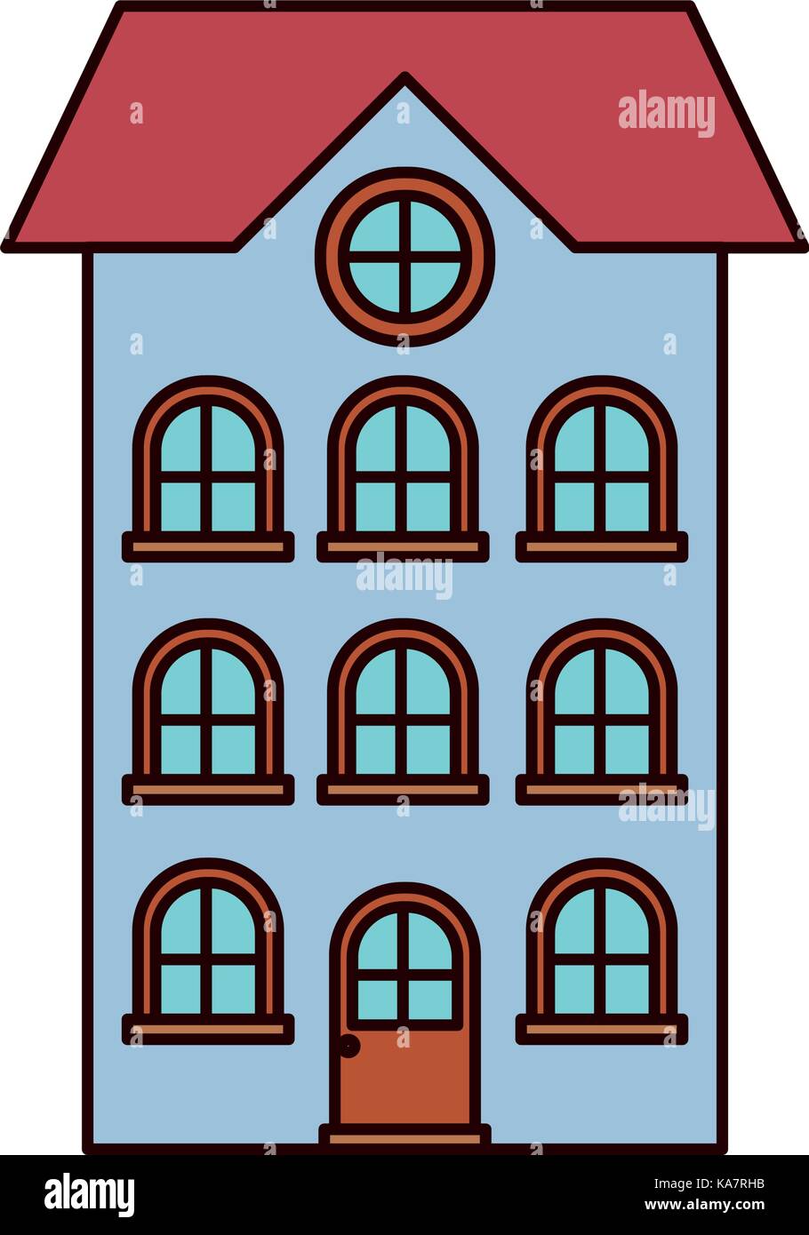 Building Apartment Of Four Floors Colorful Silhouette Stock Vector