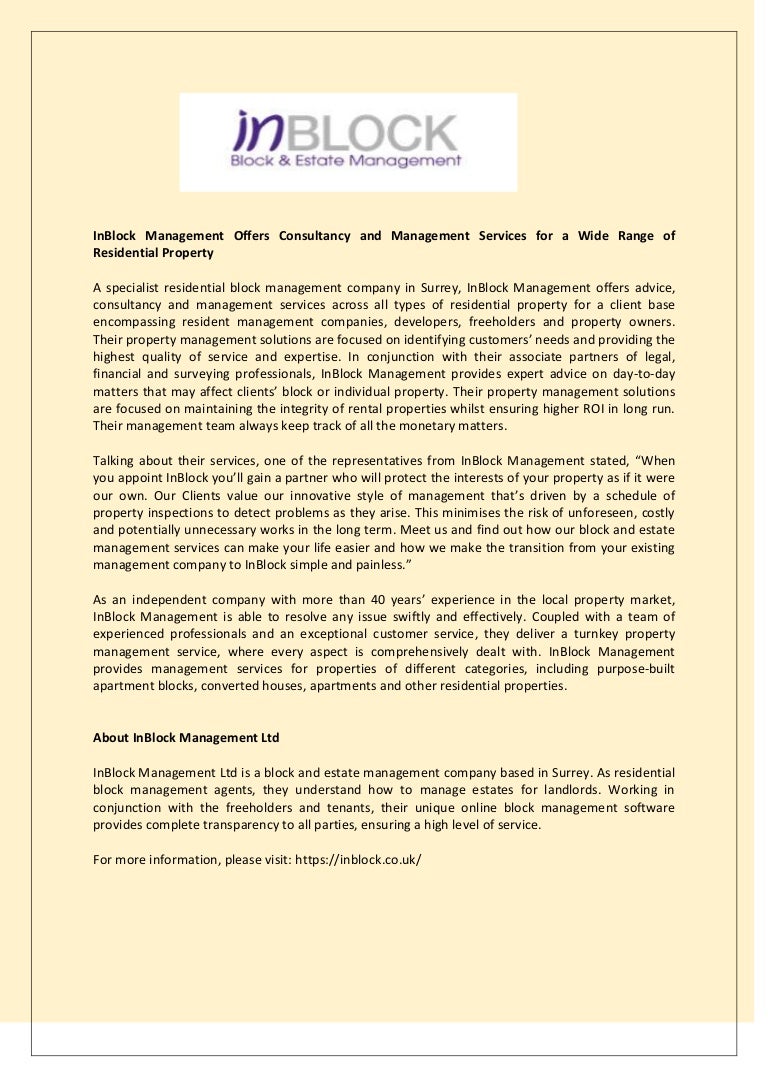 In Block Management Offers Consultancy And Management Services For A