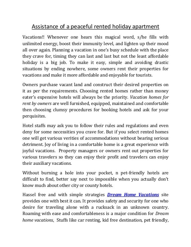Assistance Of A Peaceful Rented Holiday Apartment