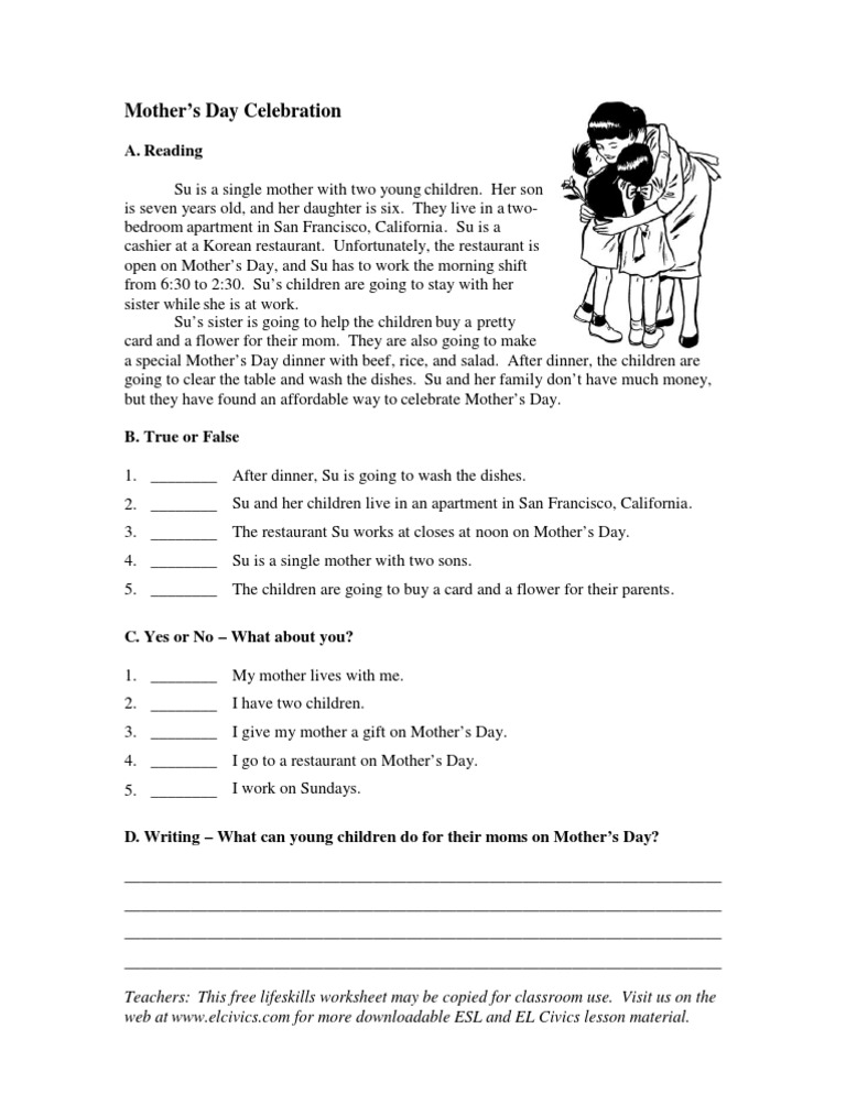 Mothers Day Worksheet Text