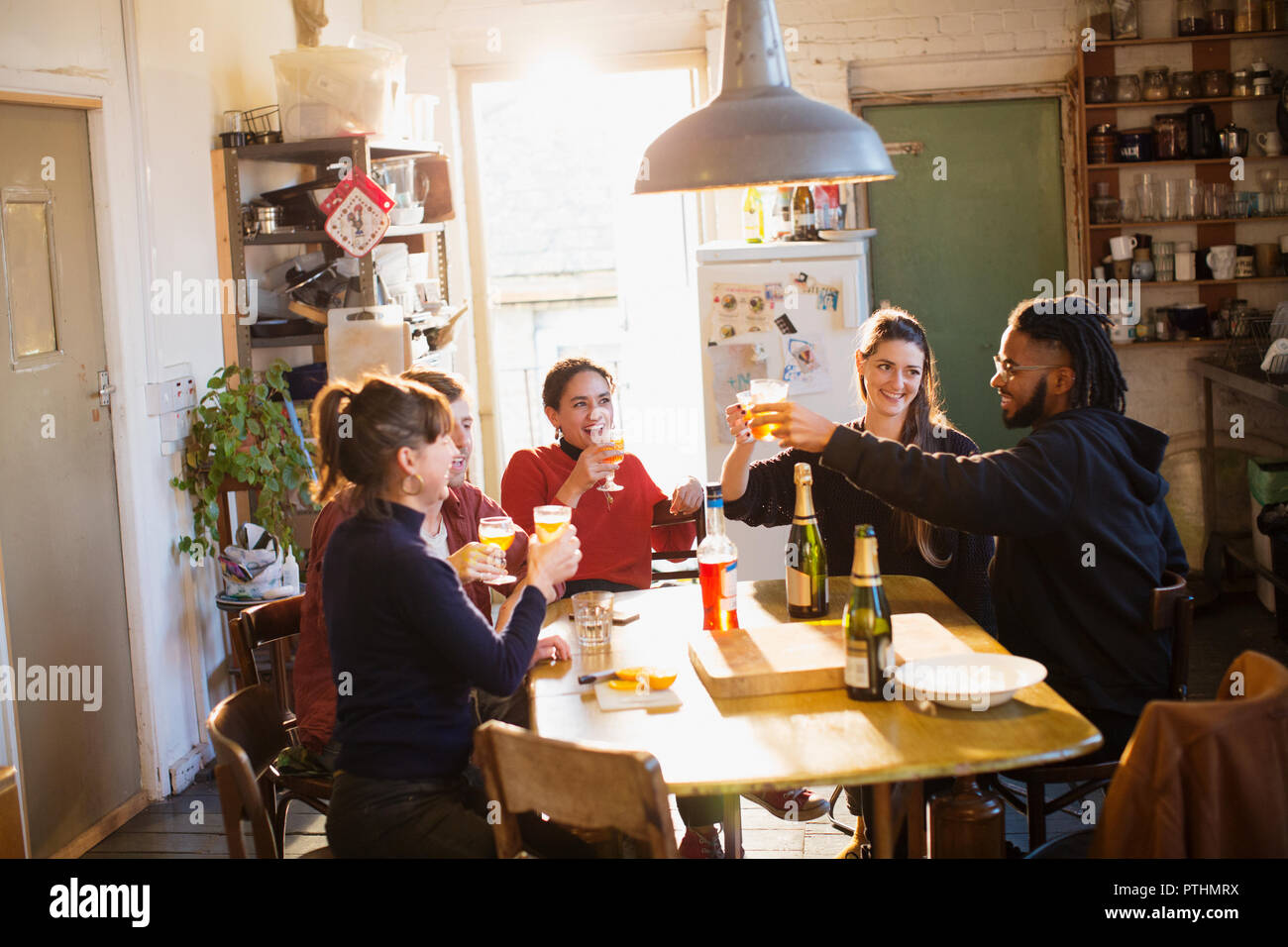 Happy Young Adult Friends Celebrating Toasting Cocktails In