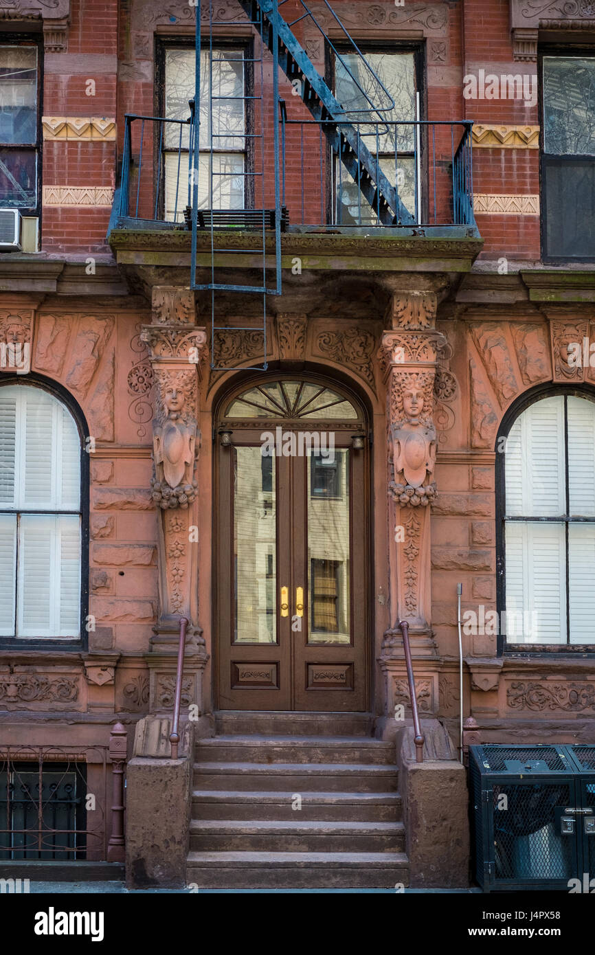 Entrances To Red Brick Apartment Buildings In New York City Stock